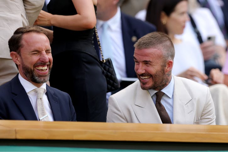 The Saturdays’ Mollie King can just be spotted behind Sir Gareth Southgate and David Beckham ©Julian Finney/Getty Images