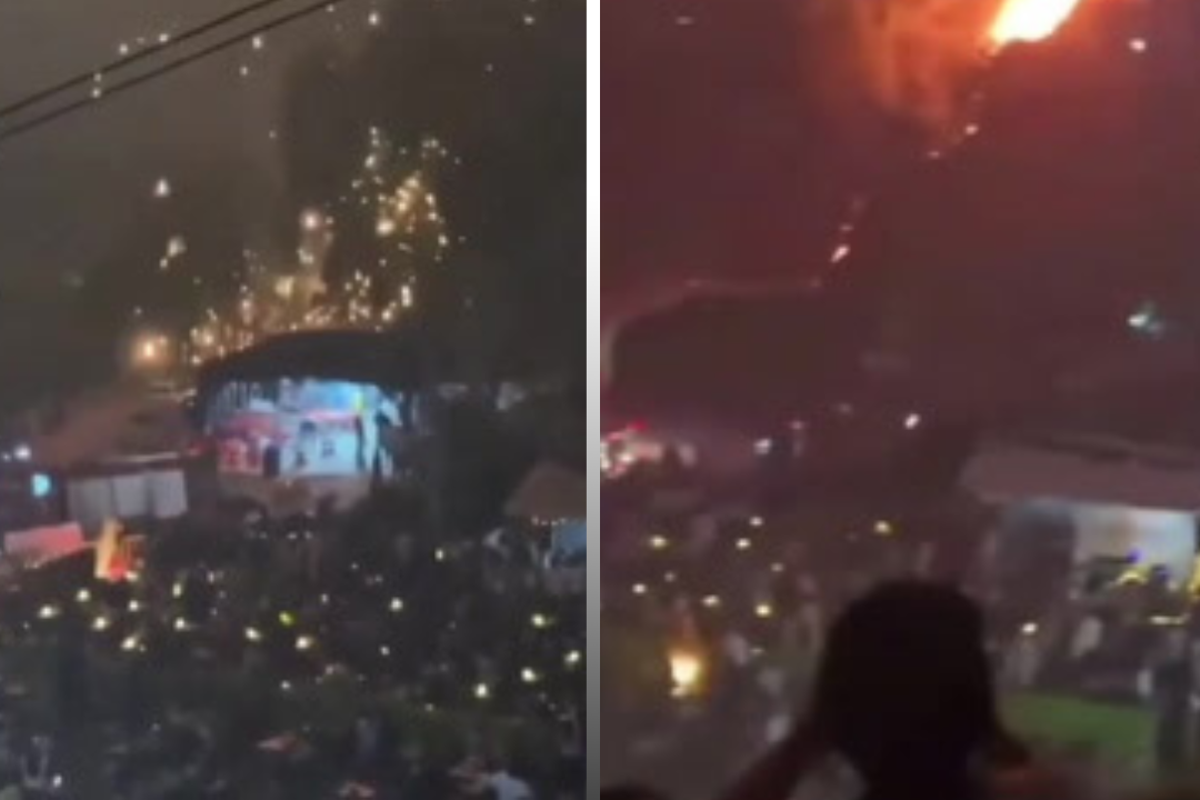 Flaming drones rain fire on spectators after malfunctioning during fireworks display
