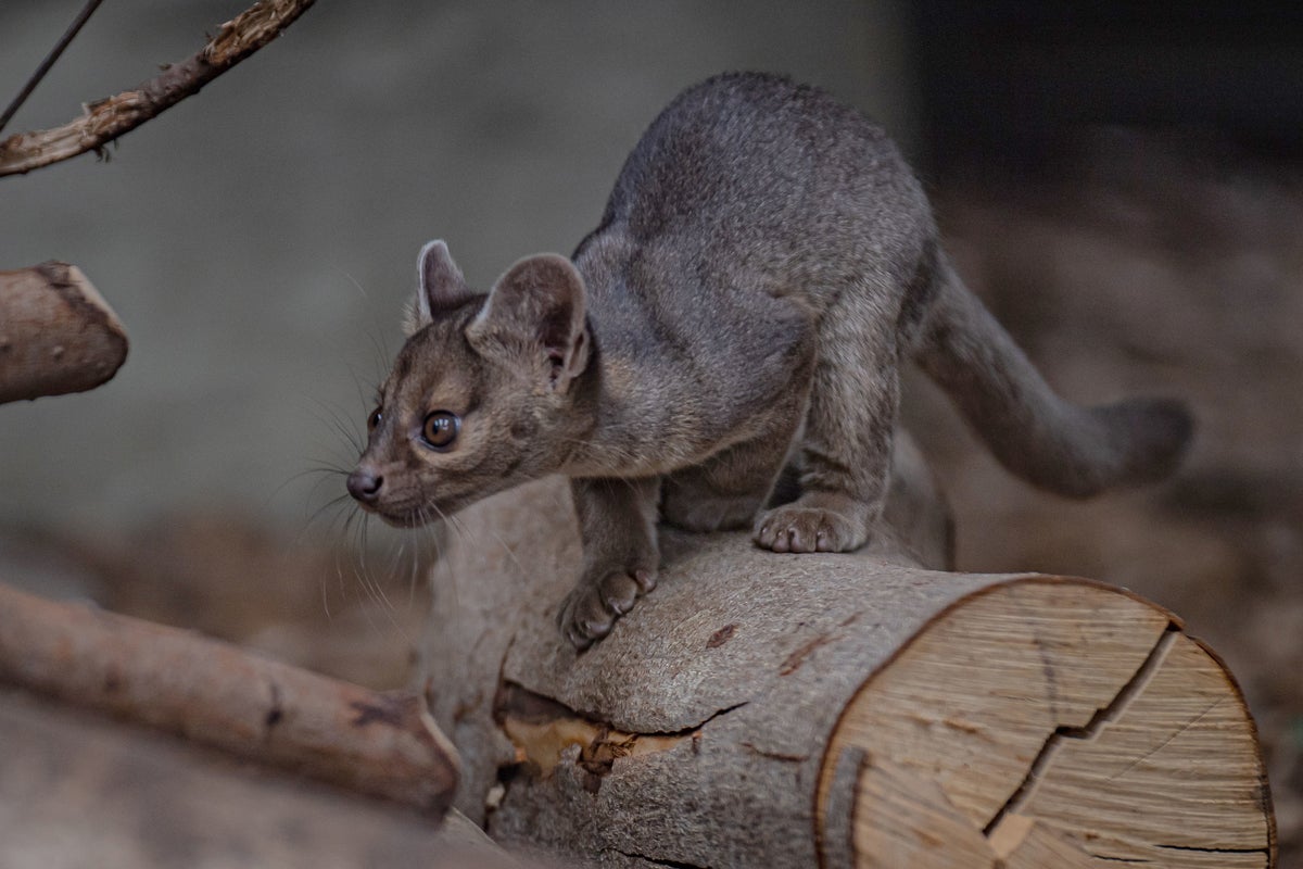 The fossa is a slender, cat-like mammal and the largest natural predator in Madagascar. There are fewer than 2,500 fossas estimated to remain in the wild, mainly due to deforestation.