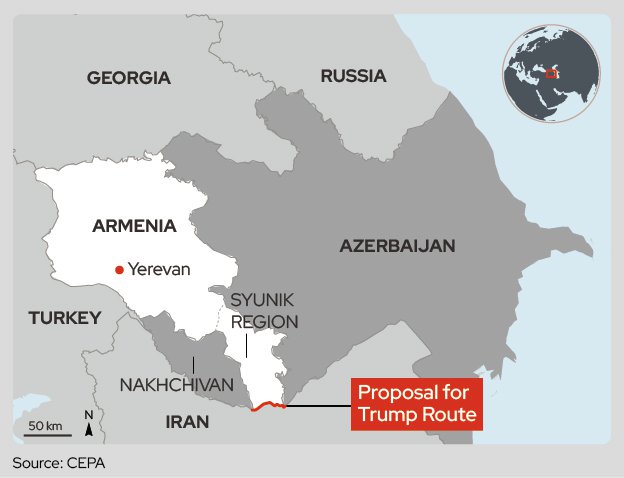 Tripp has been proposed before under a different name by Azerbaijan. The so-called Zangezur Corridor is a 40km (25-mile) stretch connecting Azerbaijan proper to its exclave, Nakhchivan, and then on to Turkey.