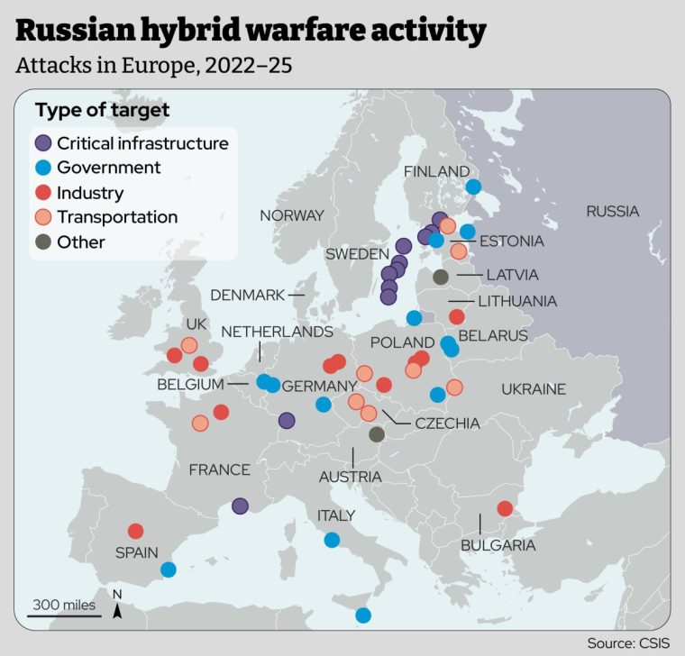 “The word is a bit strange,” he said. “We have seen assassination attempts, we have seen in some countries the jamming of commercial airplanes, which could pose great risks, of course, to commercial aviation, and we have seen an attack on the NHS in the United Kingdom.