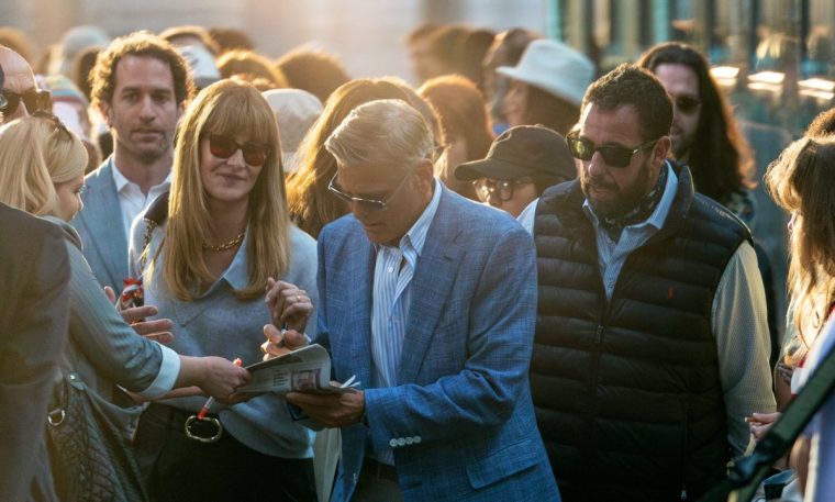 On a whim, Kelly rallies his entourage to help him find his daughter, who is on a trip around Europe, and persuade her to accompany him to an event in Italy honouring his career. Said entourage is huge and only semi-loyal, packed with people and performances that threaten to steal the show from Clooney. There’s his slightly scornful publicist Liz, played by Laura Dern (who won an Oscar for her last Baumbach collab in Marriage Story), chatty hairdresser Candy (Emily Mortimer, who co-wrote the script), and an army of sycophantic fans who wait on him hand and foot in Tuscany, including a relentlessly upbeat driver (Alba Rohrwacher).